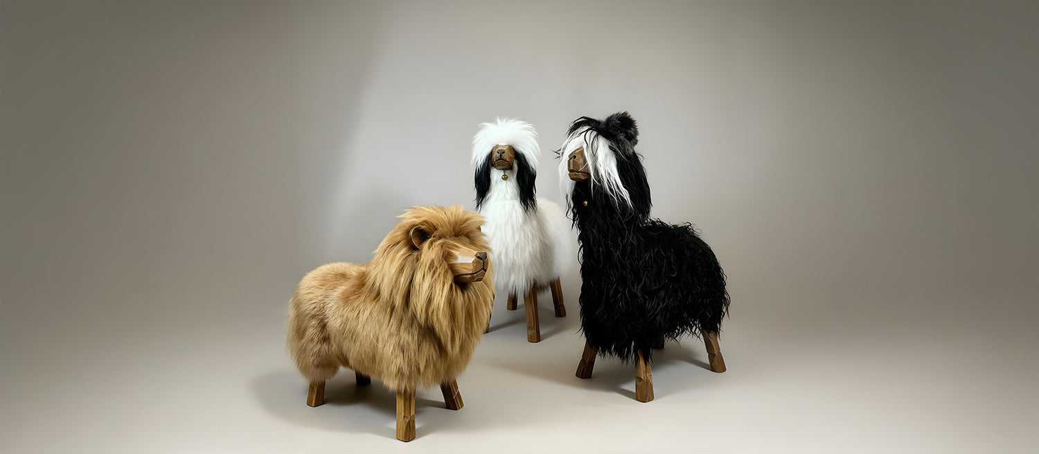 DIe echten Felle von Sheepskin Nature sind handgemacht, kuschelig-weich und natürlich temperatur-regulierend. Jeder Hocker ist mit einer 8cm dicken Sitzfläche bequem gepolstert. Die Gesichter, Hörner und Beine sind handgeschnitzt. So ist jeder Schafhocker ein individueller Charakter.