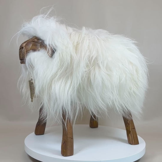 Unsere handgeschnitzten Designer Schaf Hocker sind einfach wunderschön und sorgen für Charakter, mit der 8cm Polsterung und dem geruchlos, samtweichem Echtfell - schmücken sie ihr gemütliches Zuhause. Perfekt als Stuhl am Esstisch, als Katzenbett oder einfach als Dekoration ein Stück Tradition.