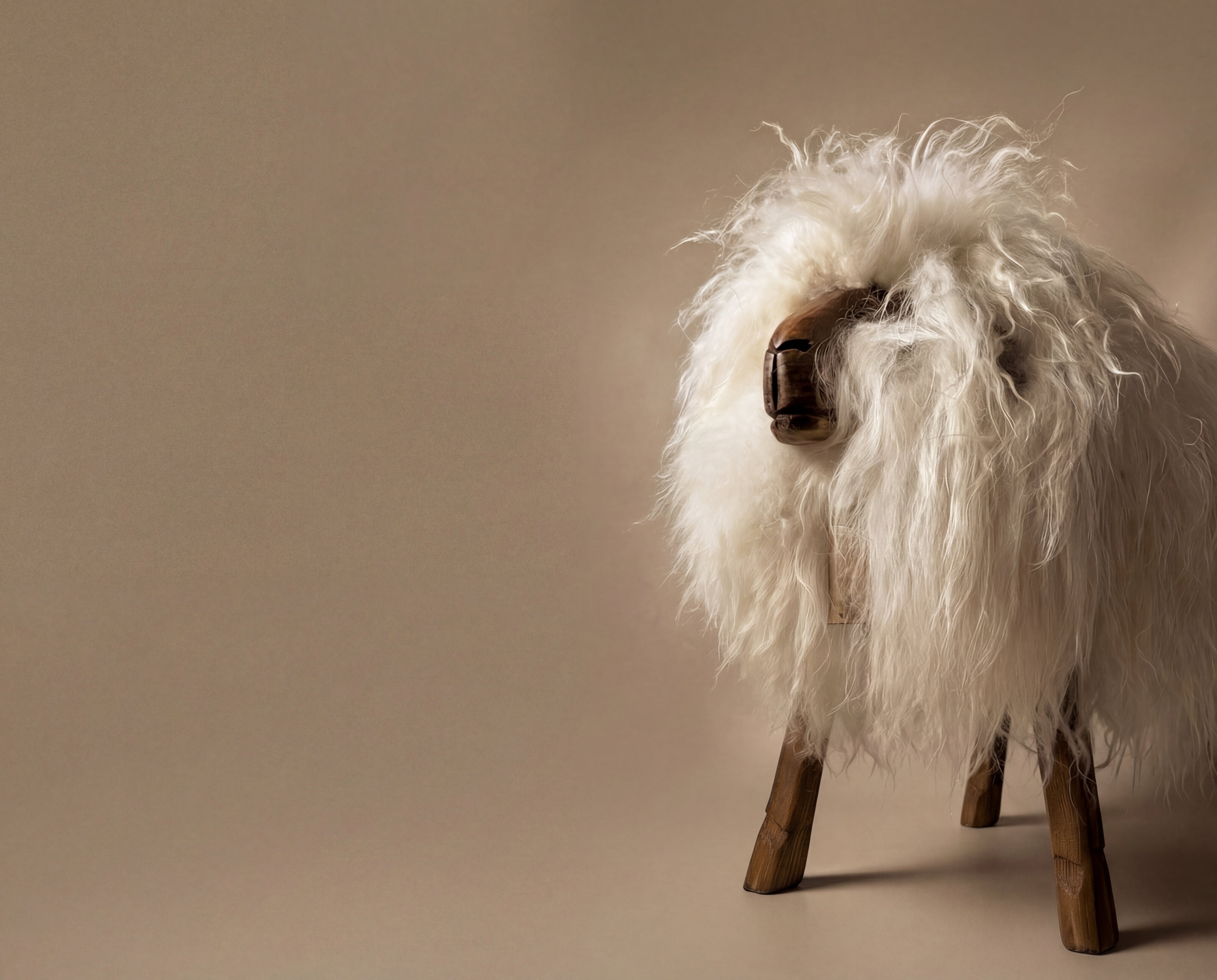 Sheepskin Nature 出品的真羊皮凳皆為手工製作,觸感柔軟舒適,並具有天然的溫度調節功能。每張凳子都配有舒適的 8 公分厚坐墊。凳子的臉部、羊角和羊腿均為手工雕刻,賦予每張羊凳獨特的個性。
