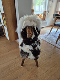 DIe echten Felle von Sheepskin Nature sind handgemacht, kuschelig-weich und natürlich temperatur-regulierend. Jeder Hocker ist mit einer 8cm dicken Sitzfläche bequem gepolstert. Die Gesichter, Hörner und Beine sind handgeschnitzt. So ist jeder Schafhocker ein individueller Charakter.
