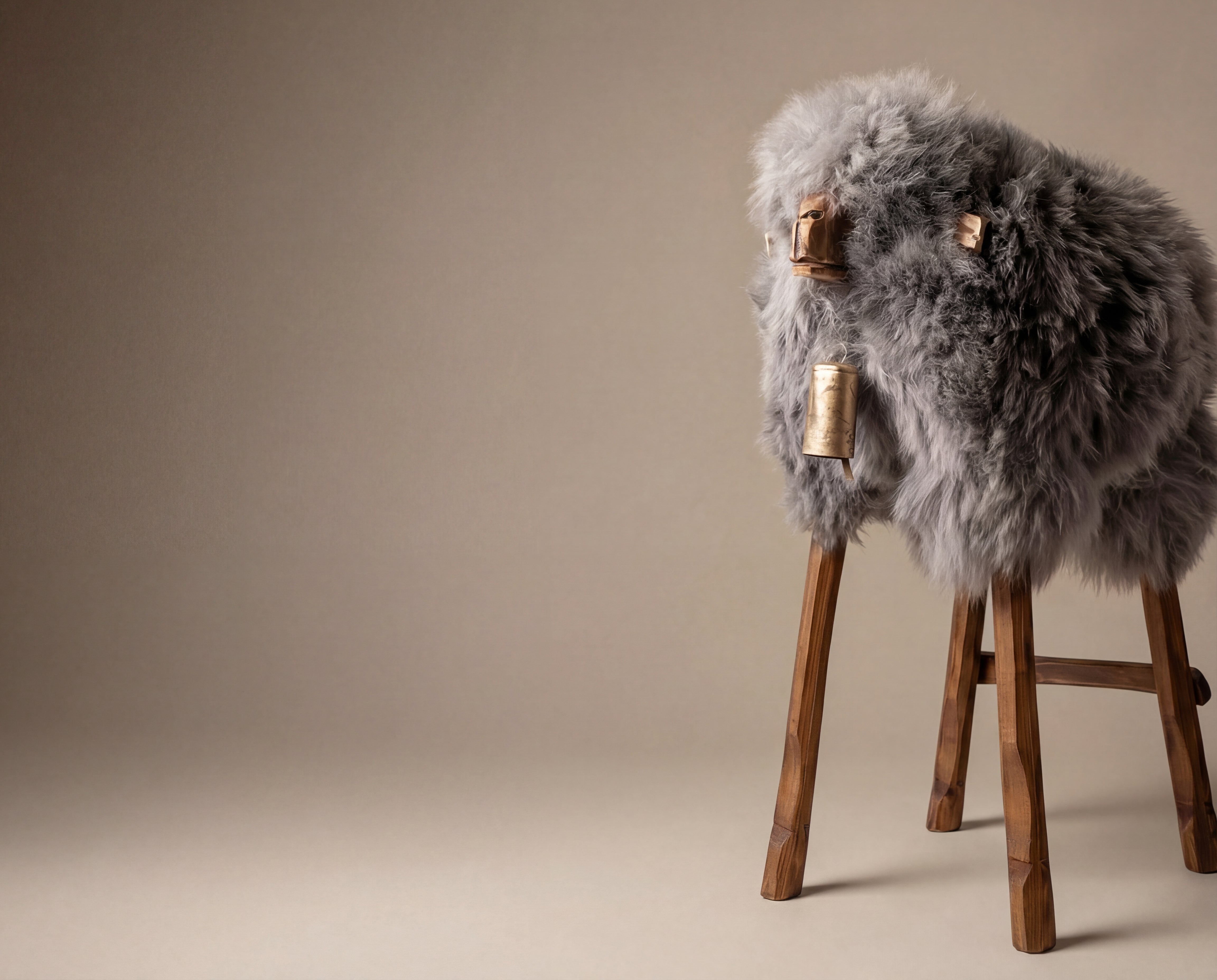 Gemütlichkeit und echte Handwerkskunst für dein Zuhause. Der Schafhocker, für Menschen, mit Sinn für das Besondere.